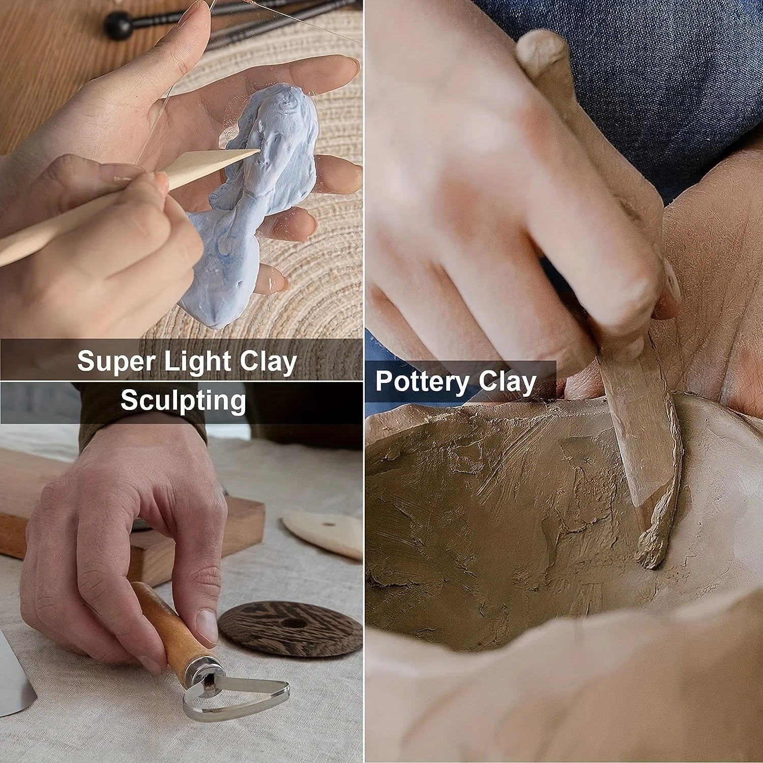 8-Piece Clay Sculpting Tool Set – DIY Pottery & Ceramic Carving Tools with Wooden Knives for Modeling, Molding & Crafting
